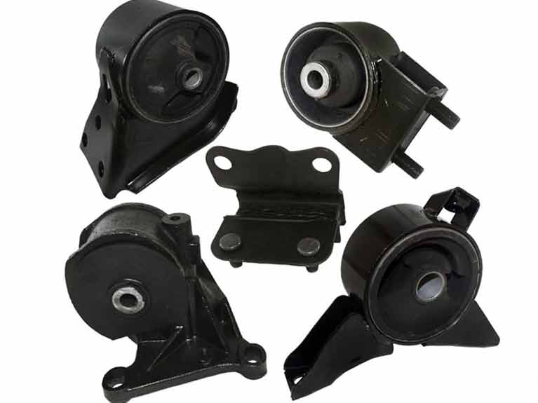 همانطور که پیشتر هم اشاره کردیم دسته موتورهای لاستیکی تنها از قطعات لاستیکی ساخته شدهاند که ساده است و میتواند با توجه به قابلیت ارتعاش و ضربه گیری که دارد ضربات و تکان های موتور و گیربکس را به خود جذب کند. در نمونه لاستیکی دسته موتور ها اما دو صفحه فلزی که یکی به گیربکس متصل می شود و دیگری به شاسی خودرو ارتباط پیدا می کند هم دیده می شود که نقش آنها به شدت مهم میباشد.